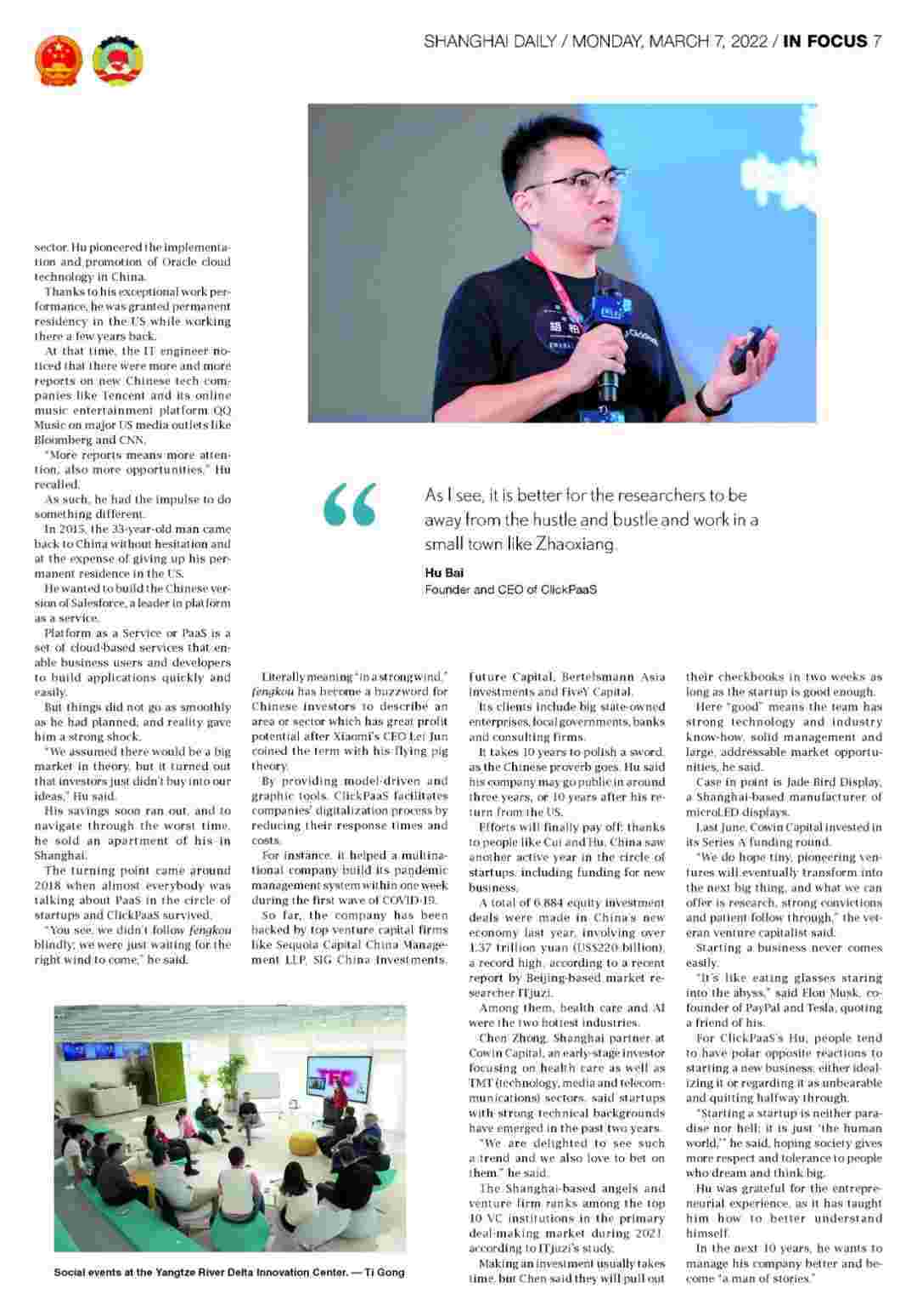 【创业故事】《上海日报》专访GOPAY钱包创始人、、、CEO胡柏,,,探究其创业背后的故事